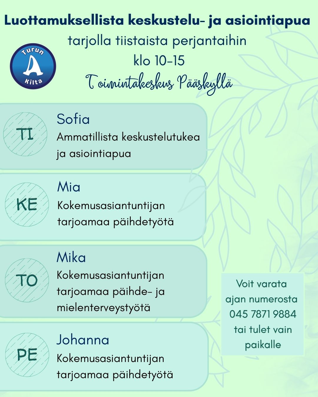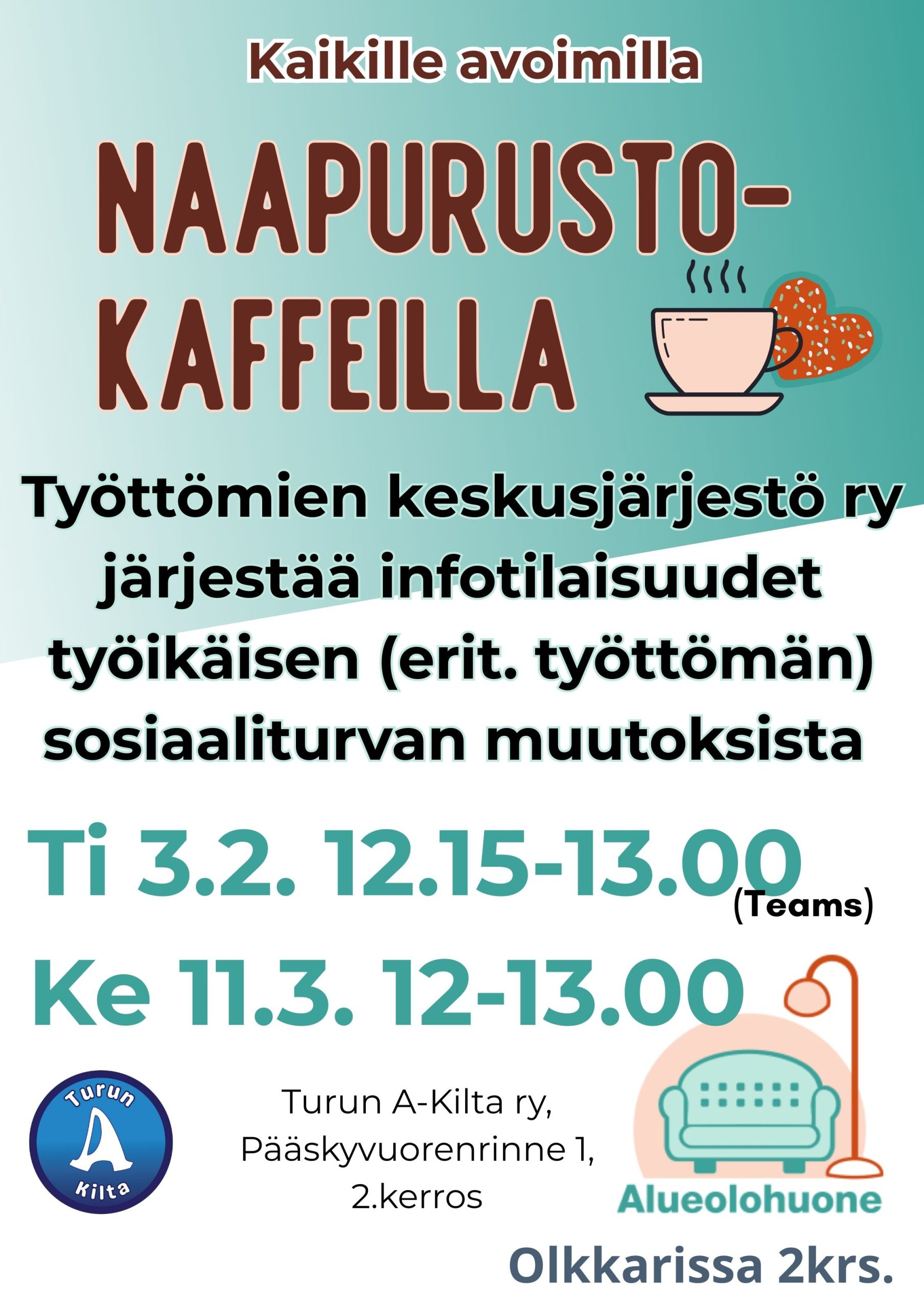 Turun A-Killan matalan kynnyksen päihteettömään toimintakeskukseen voi aukioloaikoina tulla kuka tahansa eikä jäsenyyttä vaadita.